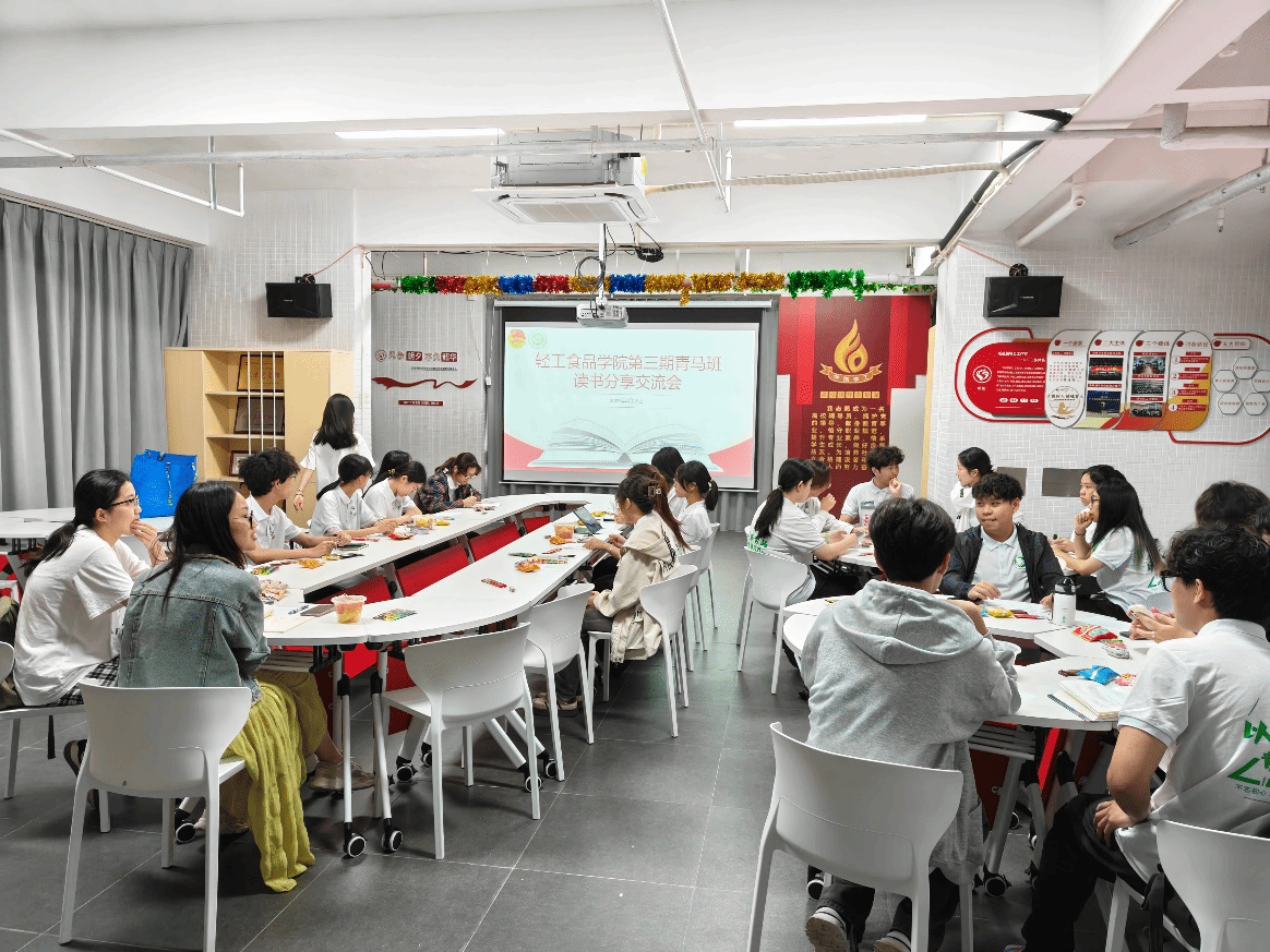 2025年4月25日轻工食品学院在21栋听能活动室举行了读书分享会,轻工食品学院团委副书记吴晓瑜老师、优秀学生干部代表食品212班丘梓慧及第三期青马工程培训班全体学员参加了本次活动。