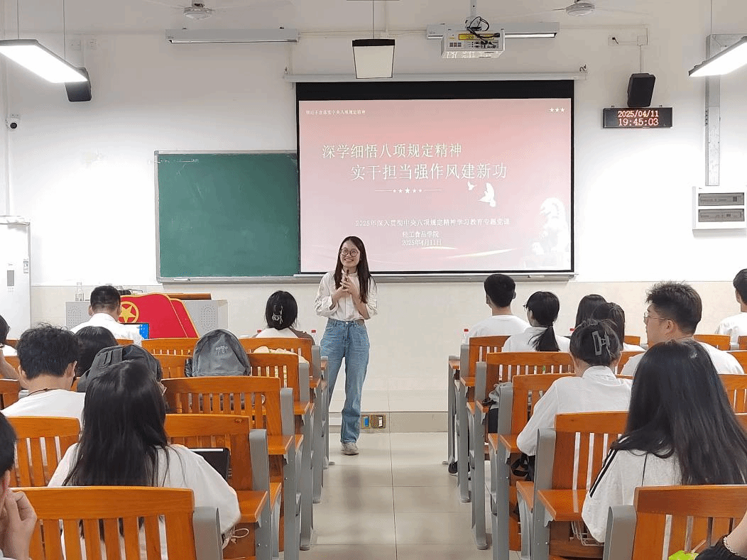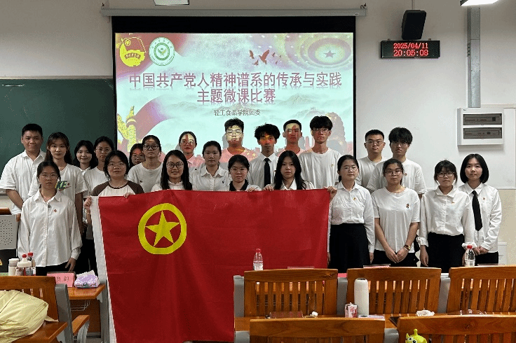2025年4月11日,仲恺农业工程学院轻工食品学院团委在教学楼①204举行了 “传承红色基因,凝聚青春力量——中国共产党人精神谱系的传承与实践”主题微课比赛,轻工食品学院团委副书记吴晓瑜老师、学院2025年春季入党积极分子以及第三期青马班全体成员参加了本次活动。