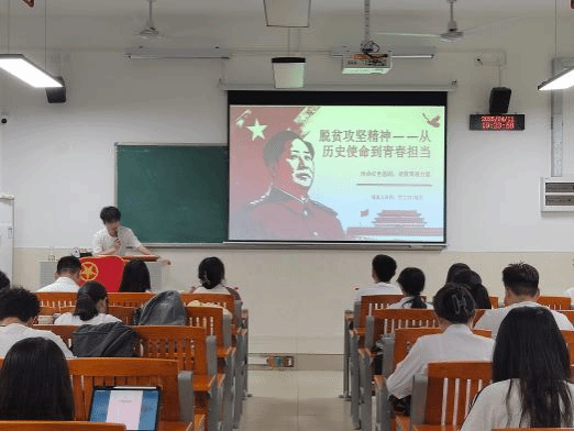 为了使微课更加生动有趣、富有感染力,同学们在授课形式上进行了大胆创新。通过故事引入、观看影片、播放歌曲、展示图片、现场互动等方式,让历史场景更加直观地呈现在听众面前。还有的同学结合自身社会实践经历和专业发展,分享了在传承红色精神过程中的行动和收获,使抽象的精神内涵变得具体可感。
