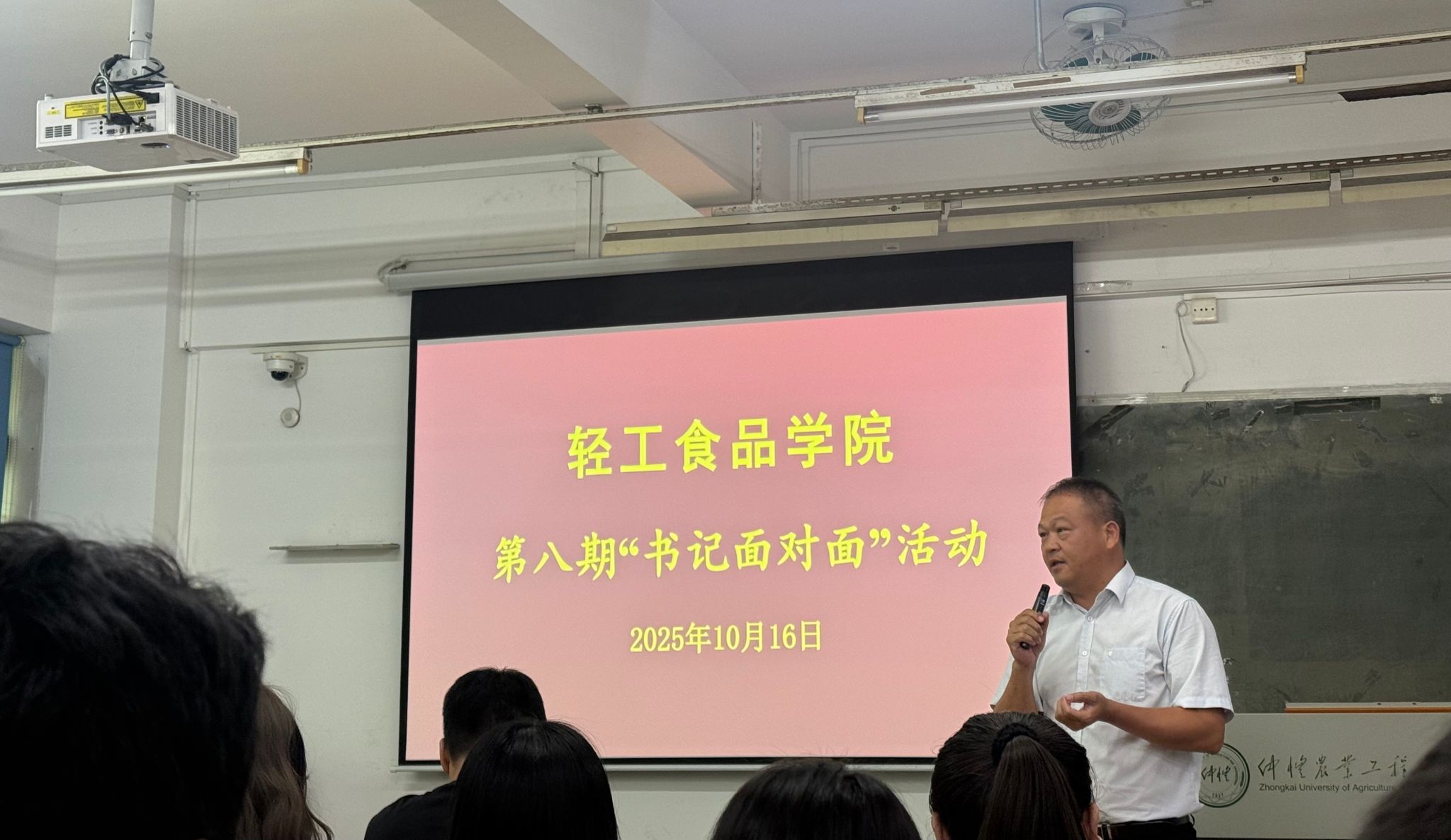 为深入贯彻落实立德树人根本任务,进一步密切学院党委与广大师生的联系,10月16日,轻工食品学院在海珠校区教学楼309举办第八期“书记面对面”活动。学院党委书记刘胜洪、副书记吉燕、副院长肖乃玉、丘苑新,研究生辅导员以及研究生二、三年级全体学生参加活动。活动由吉燕主持。