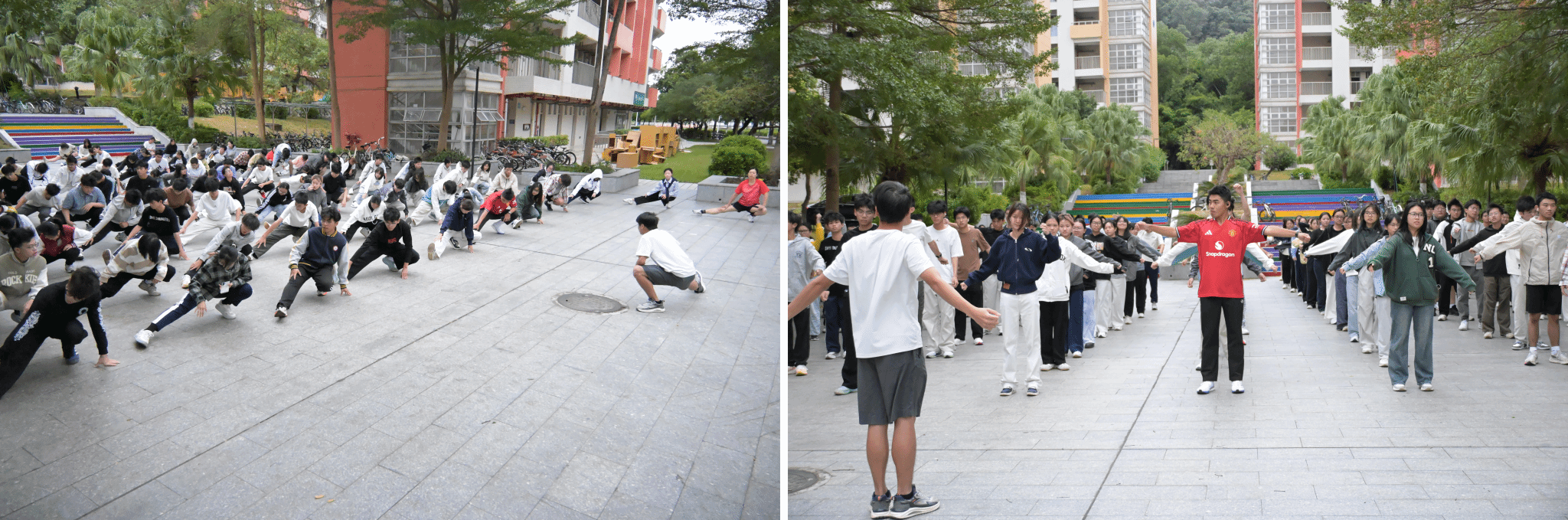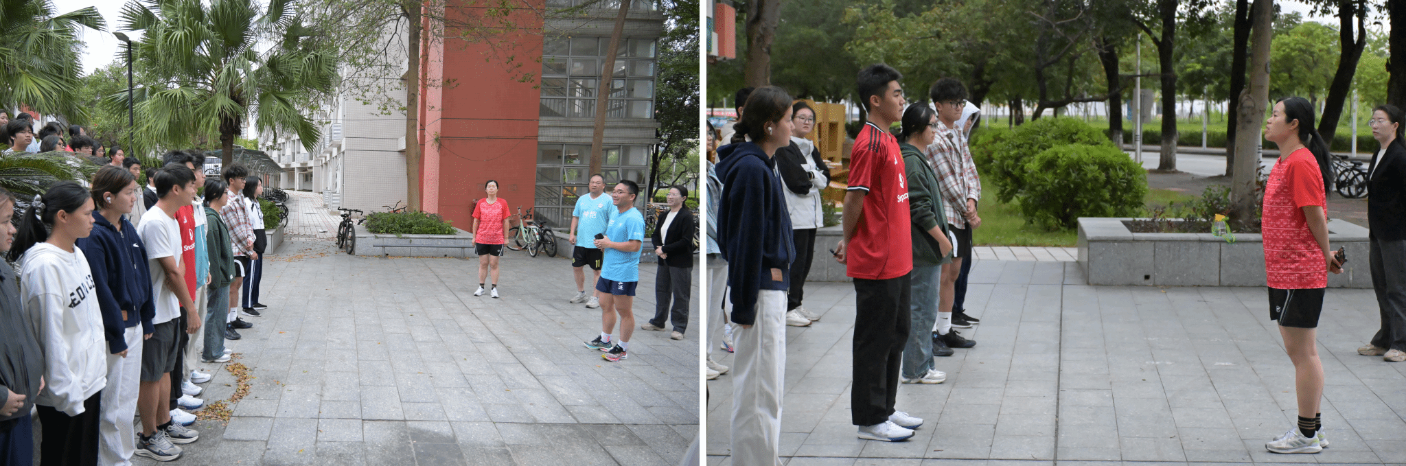 活动伊始,学院学生会干部同学带领全体师生进行科学热身,现场气氛热烈,同学们精神饱满,展现出新时代青年朝气蓬勃、奋发向上的精神风貌。