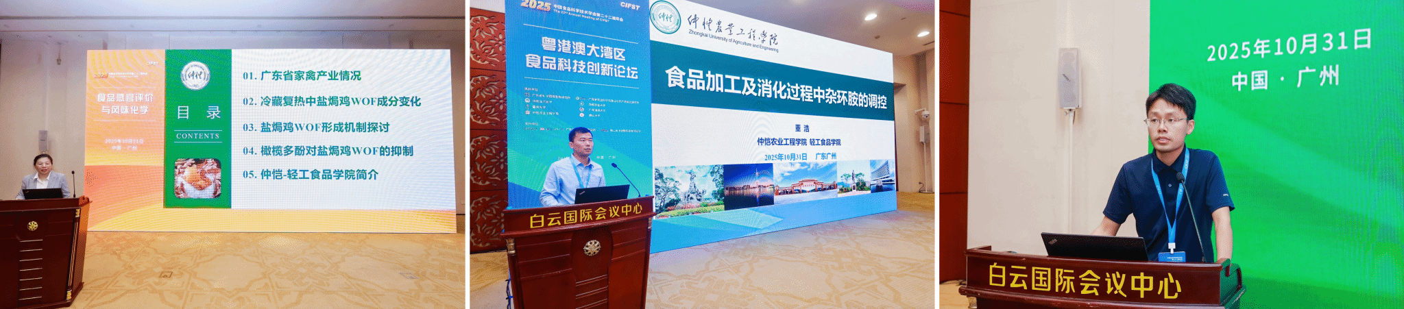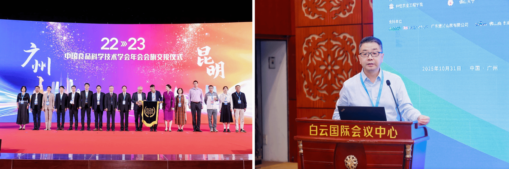2025年10月29日至31日,中国食品科学技术学会第二十二届年会在广州白云国际会议中心隆重召开。本届年会由广东省科学院微生物研究所、广东省农业科学院蚕业与农产品加工研究所、华南理工大学、华南农业大学、暨南大学、广东海洋大学、仲恺农业工程学院、佛山大学等8家高校及科研院所共同承办。我校作为联合承办单位之一,积极组织师生参与会议,展现了学校在食品科技领域的深厚积淀与责任担当。