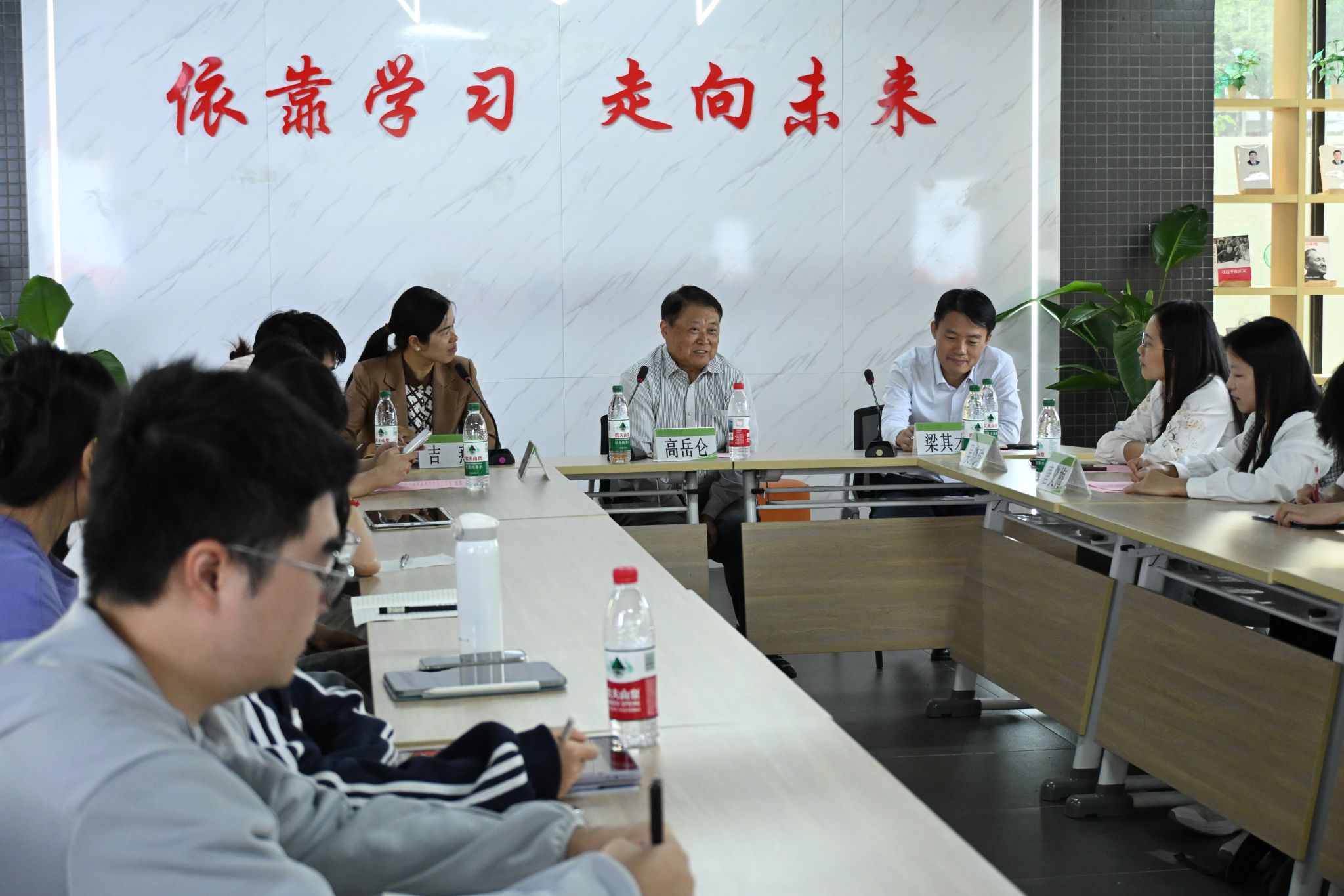 为深入学习贯彻党的二十届四中全会精神,推动红色基因代代相传,激励青年学生坚定理想信念、勇担时代使命,2025年11月17日,轻工食品学院在白云校区学生社区党建与思想政治工作室举办第五期入党积极分子培训班暨第四期“青马工程”培训班学员同老党员共话初心座谈会。学校关工委主任、原党委副书记高岳仑教授受邀出席,与青年学子共话初心使命。学校党委组织部副部长梁其才、轻工食品学院党委副书记吉燕及全体辅导员、培训班全体学员参加座谈。座谈会由吉燕主持。
