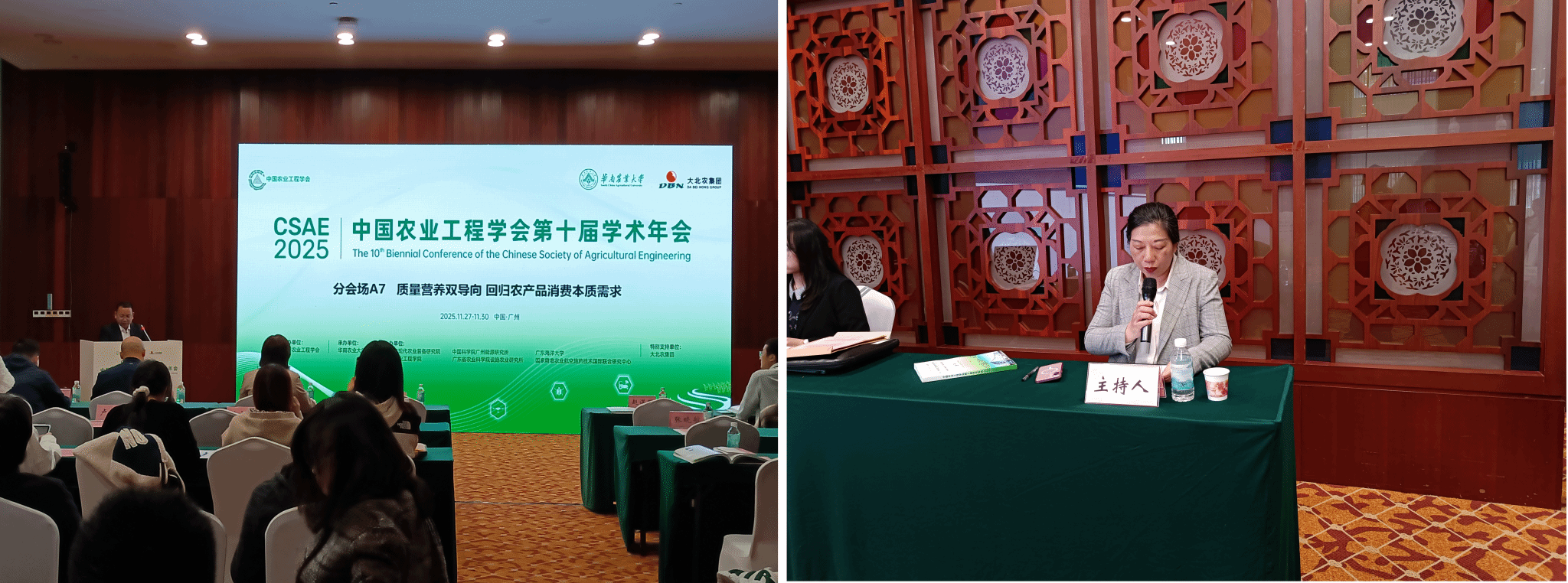 2025年11月27日至30日,中国农业工程学会第十届学术年会在广州召开。其间,由仲恺农业工程学院轻工食品学院与华中农业大学食品科技学院联合承办的年会分论坛于11月29日上午举行,本次分论坛以“质量营养双导向,回归农产品消费本质需求”为主题,聚焦消费端视角,探讨以AI为代表的前沿技术如何赋能农产品全链条价值提升。